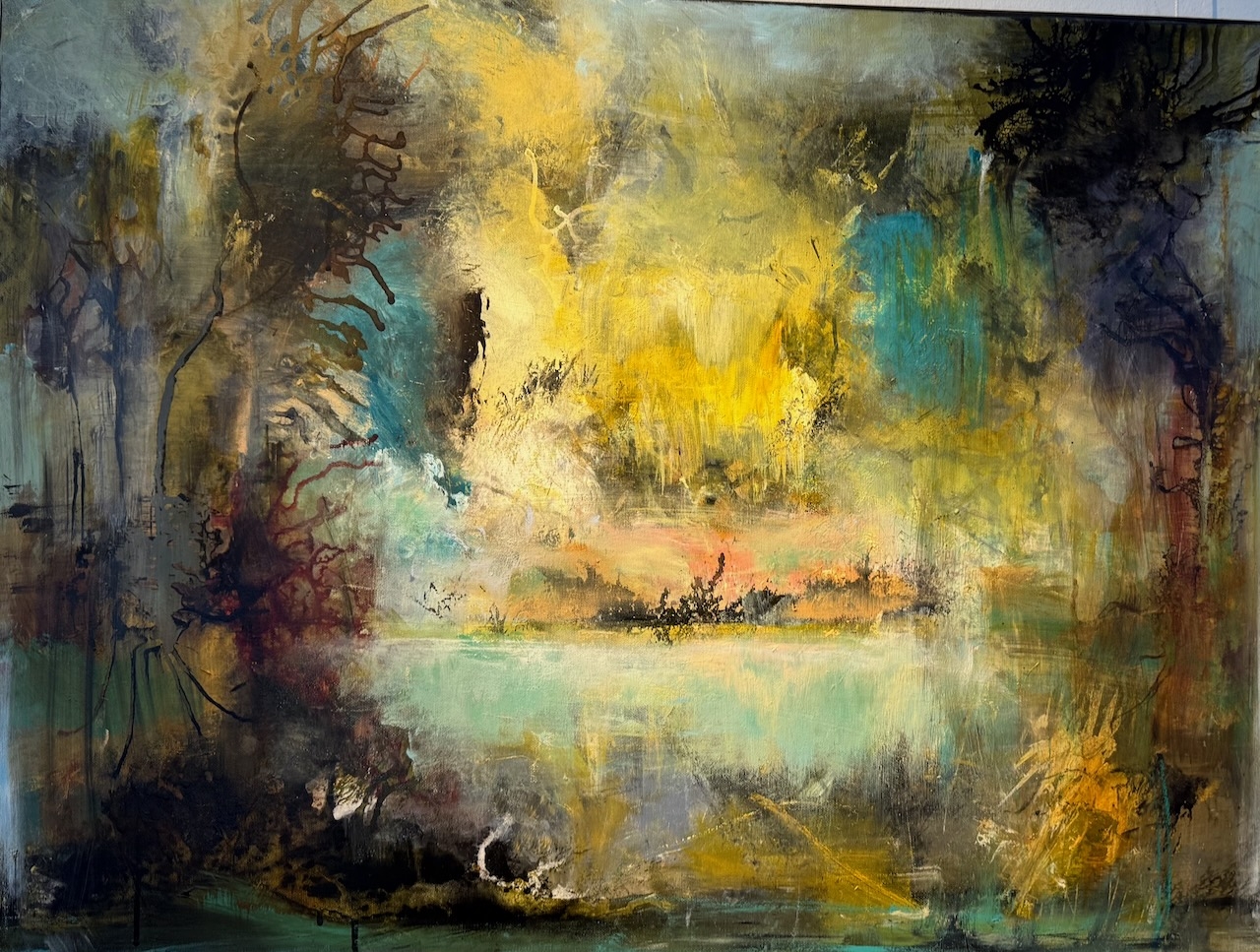 Magic Place er et stemningsfuldt abstrakt maleri, hvor farver, lag og organiske strukturer smelter sammen i en rolig og poetisk komposition.